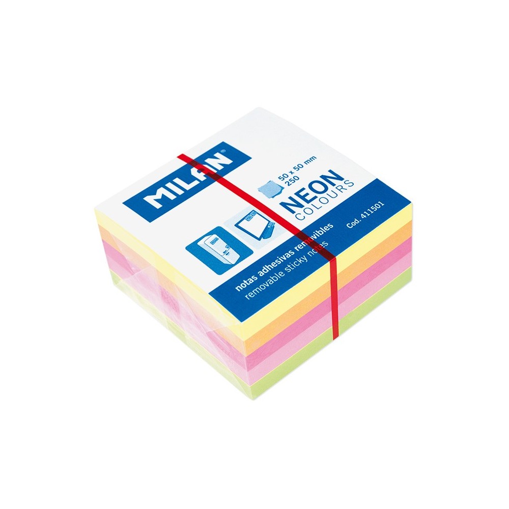 Milan Bloc de 250 Notas Adhesivas Neon Mini - Removibles - Medidas 50mm x 50mm - Colores Surtidos