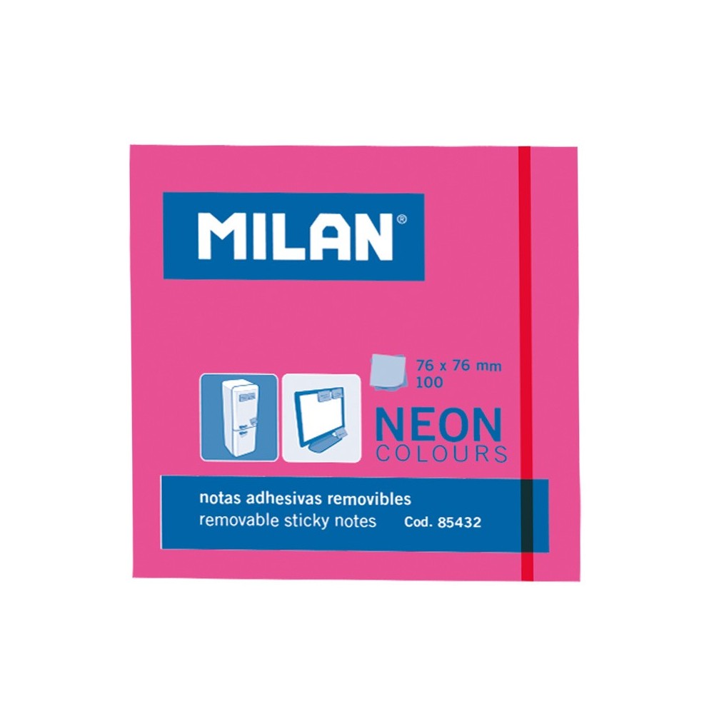 Milan Bloc de 100 Notas Adhesivas - Removibles - 76mm x 76mm - Color Rosa Neon