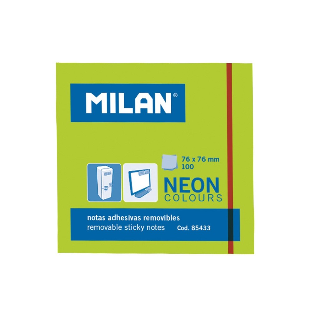 Milan Bloc de 100 Notas Adhesivas - Removibles - 76mm x 76mm - Color Verde Neon