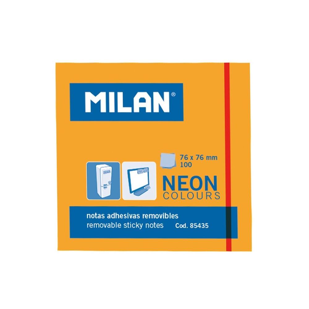 Milan Bloc de 100 Notas Adhesivas - Removibles - 76mm x 76mm - Color Naranja Neon