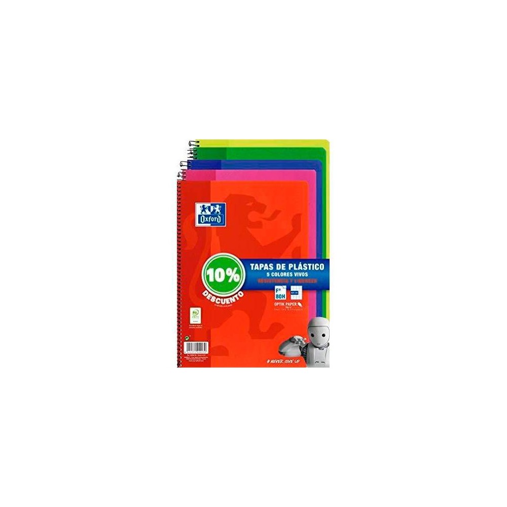-Papel OptikPaper: un papel exclusivo de Oxford único por su opacidad, lisura y satinado. La tinta no traspasa de un lado a otro ni se dispersa, resistente a la presión del lápiz y al borrado. Permite la escritura en ambas caras de la hoja.