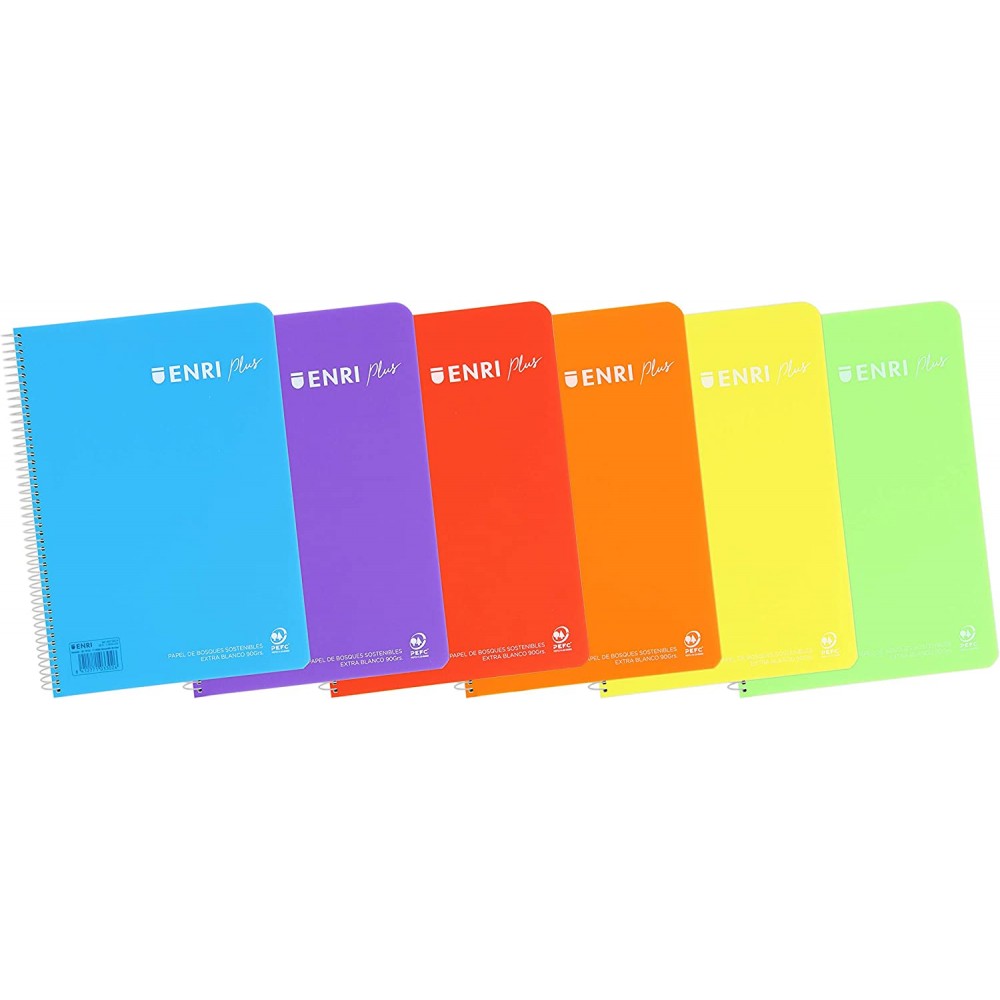 Enri Plus Cuaderno Espiral Formato Folio Cuadriculado 4x4mm - 80 Hojas 90gr con Margen - Cubierta de Plastico - Colores Surtidos Ver más grande