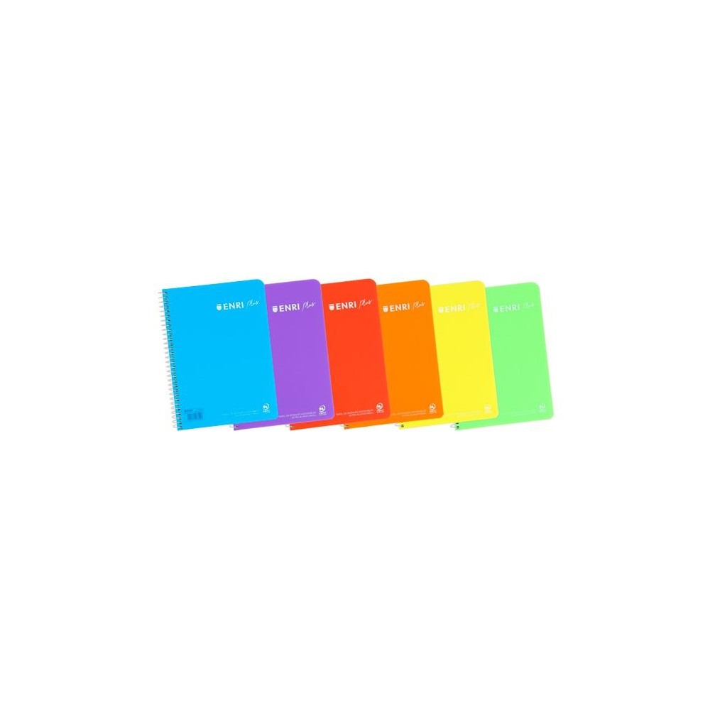 Enri Plus Cuaderno Espiral Formato Cuarto Pautado 3.5 con Margen - 80 Hojas 90gr - Cubierta de Plastico - Colores Surtidos