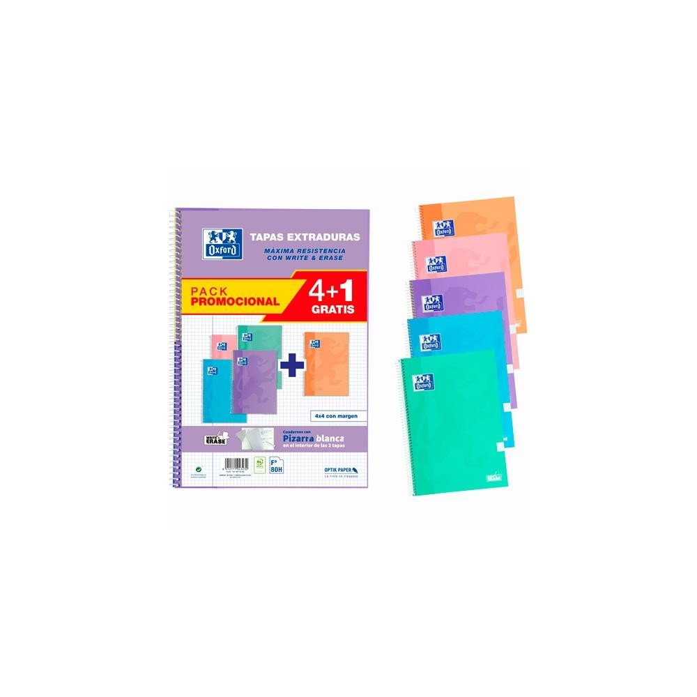 Oxford Classic Write & Erase Pack 4+1 5 Cuadernos Espiral Formato Folio Cuadriculado 4x4mm - 80 Hojas - Tapas Extraduras con Piz