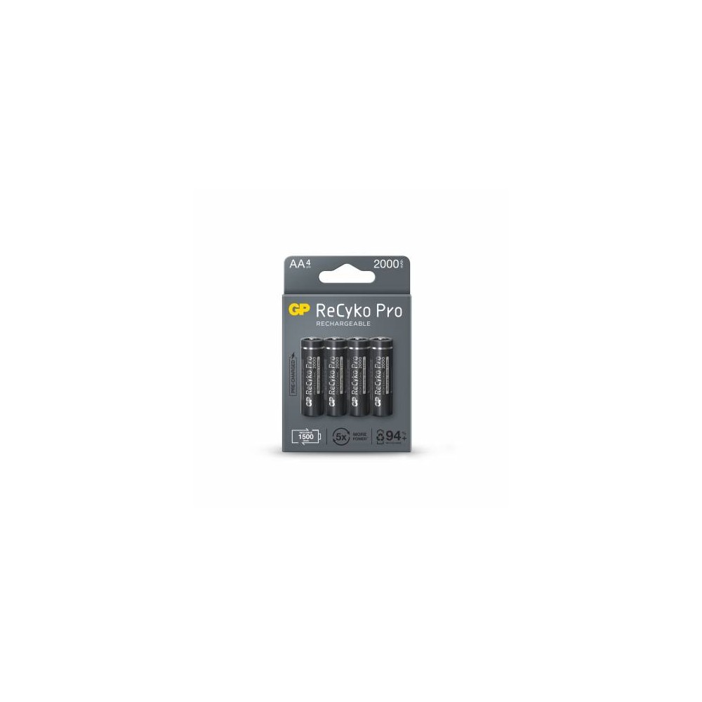 GP ReCyko Pro Pack de 4 Pilas Recargables 2100mAh AA 1.2V - Precargadas - Ciclo de Vida: Hasta 1.500 Veces
