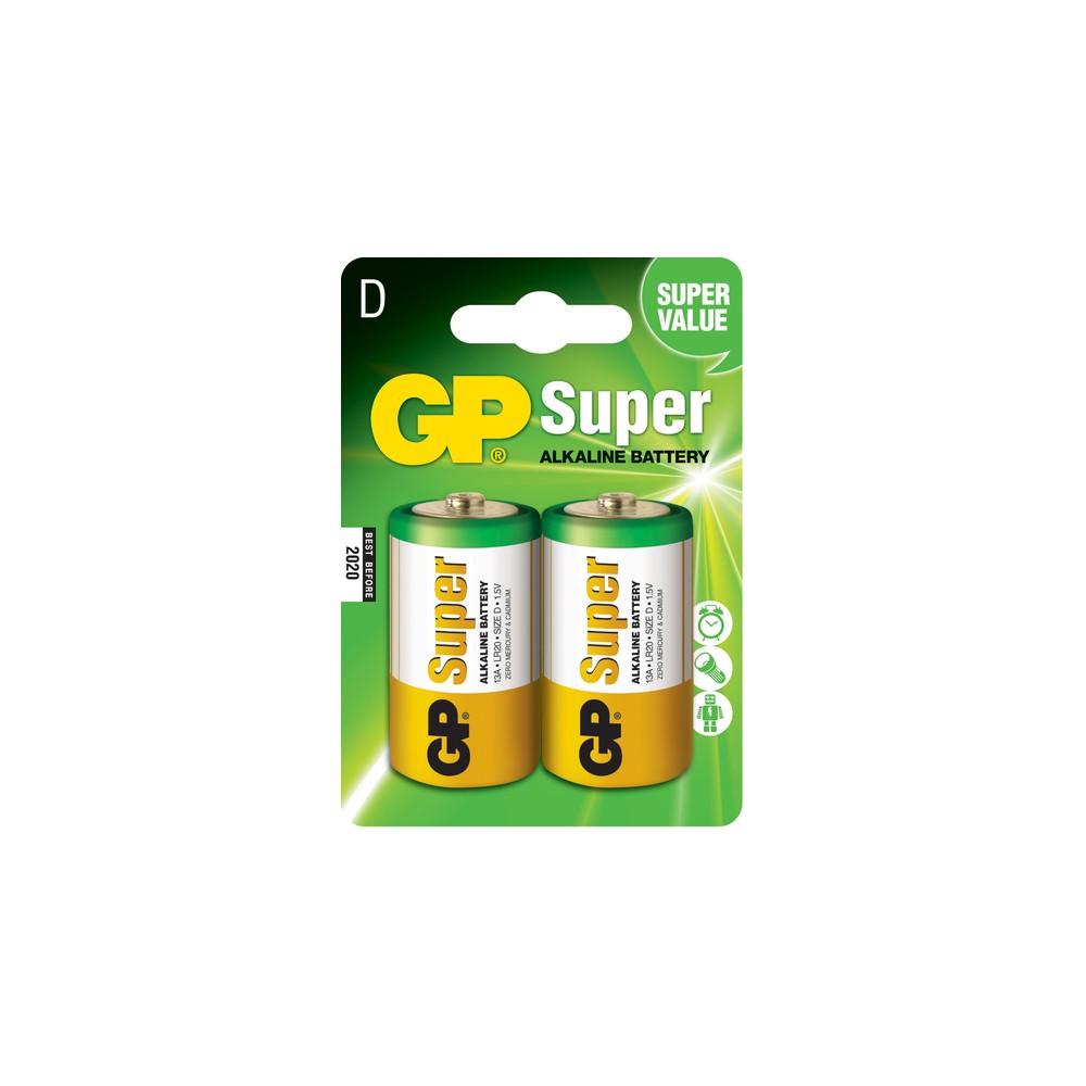 GP Pack de 2 Pilas Super Alcalinas LR20 D 1.5V