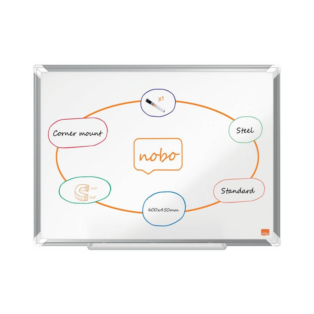 Nobo Premium Plus Pizarra Magnetica de Acero Lacado 600x450mm - Montaje en Esquinas - Superficie de Borrado Facil - Color Blanco