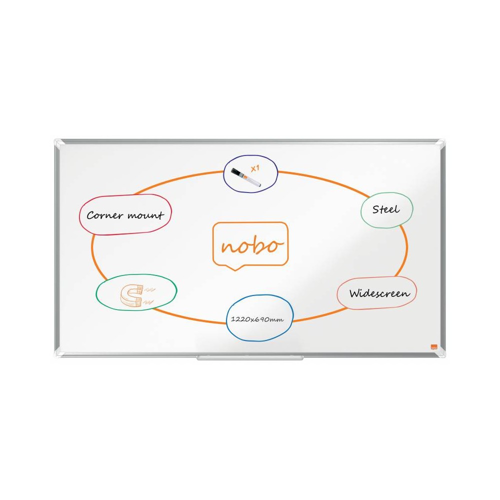 La Pizarra magnética de acero lacado de formato panorámico Nobo Premium Plus 1220x690 mm es un producto de alta calidad y funcionalidad.