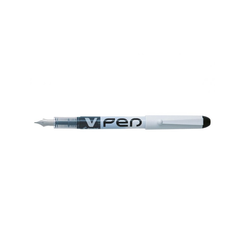 Pilot Pluma Estilografica V-Pen - Desechable - Tinta Liquida Borrable - Punta de Acero - Trazo de 0.5mm - Color Negro