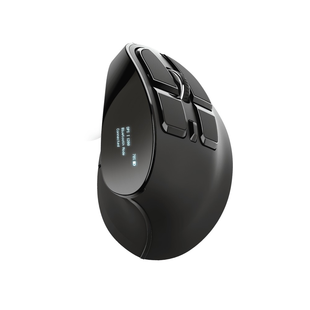 Evite la tensión en las muñecas durante largas jornadas de trabajo. Con el ratón ergonómico inalámbrico recargable Voxx de Trust, podrá trabajar todo el tiempo que desee. La forma vertical de este ratón ergonómico reduce la tensión en la muñeca y el brazo, mientras que los botones ajustables y el menú de la pantalla LED le ayudan a mejorar su ritmo de trabajo.