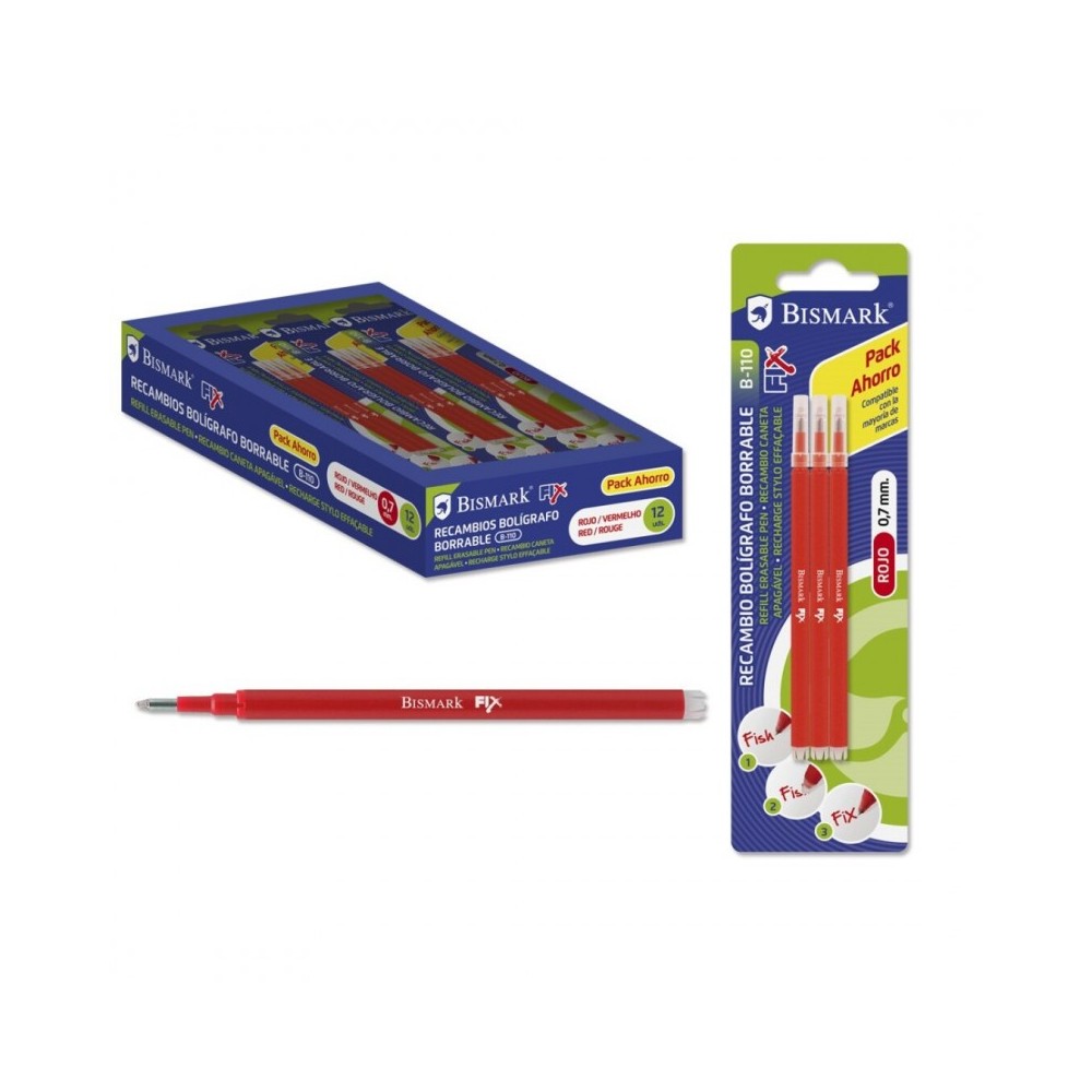 Bismark Fix Pack de 3 Recambios para Boligrafo Borrable - Punta Fina 0.7mm - Color Rojo Ver más grande