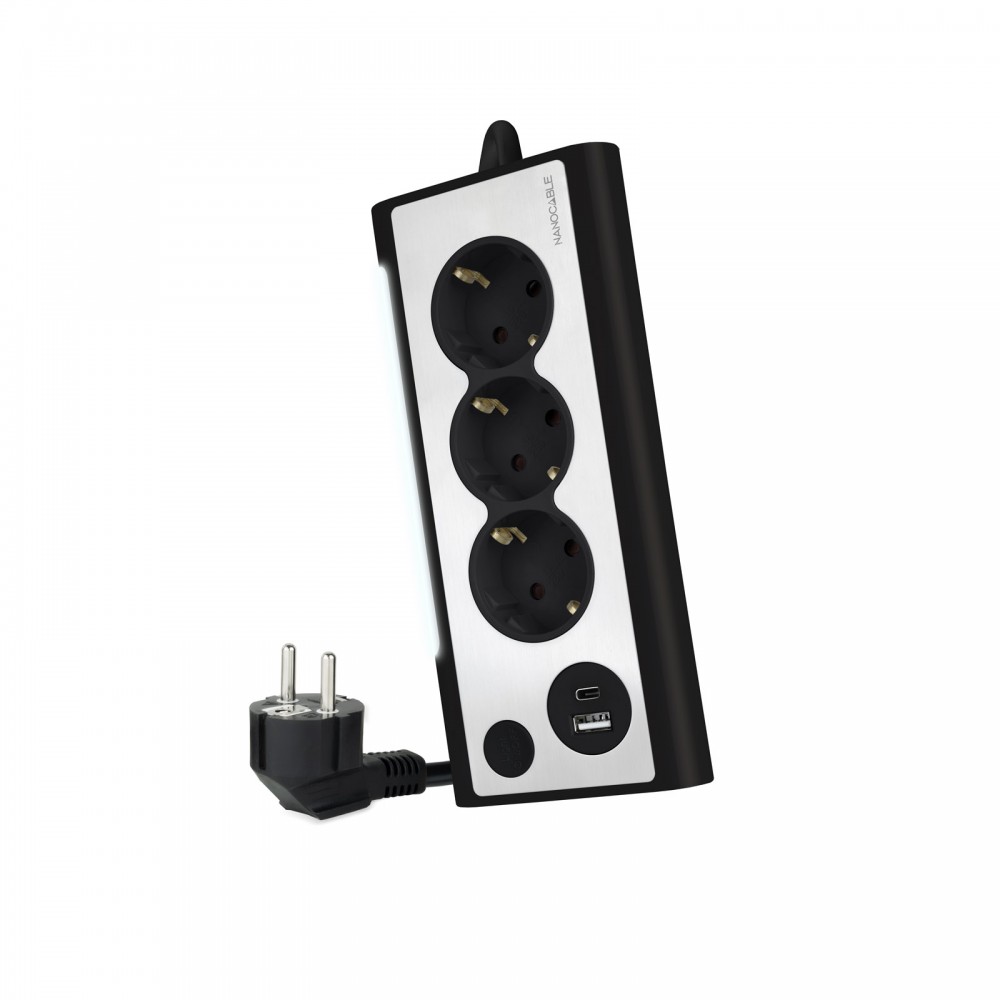 Nanocable Regleta de Sobremesa con 3x Shuckos, 1x USB-C y 1x USB-A - Iluminacion LED con Interruptor - Cable de 1.50m Ver más grande
