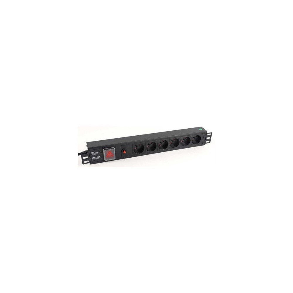 Cromad Regleta 6 Shuckos para Montaje en Rack 19" 1U - Interruptor On/Off - Carcasa de Aluminio - Cable de 1.80m