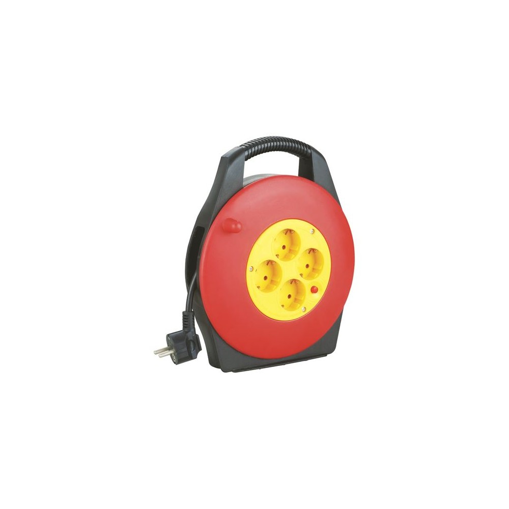 Elbat Enrollador Alargador con Proteccion Termica - 4 Shukos - Carga Maxima Enrollado 1100W, Desenrollado 3200W - Cable de 10m