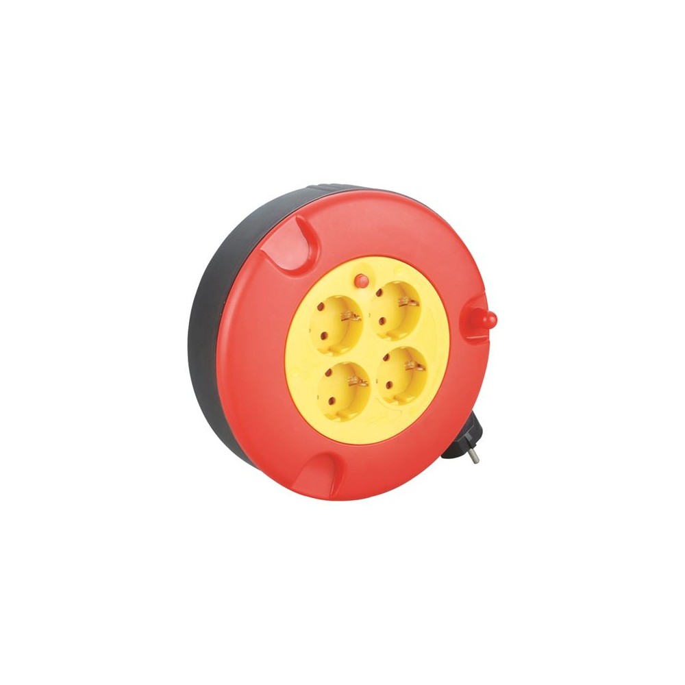 Elbat Enrollador Alargador con Proteccion Termica - 4 Shukos - Carga Maxima Enrollado 1100W, Desenrollado 3200W - Cable de 5m