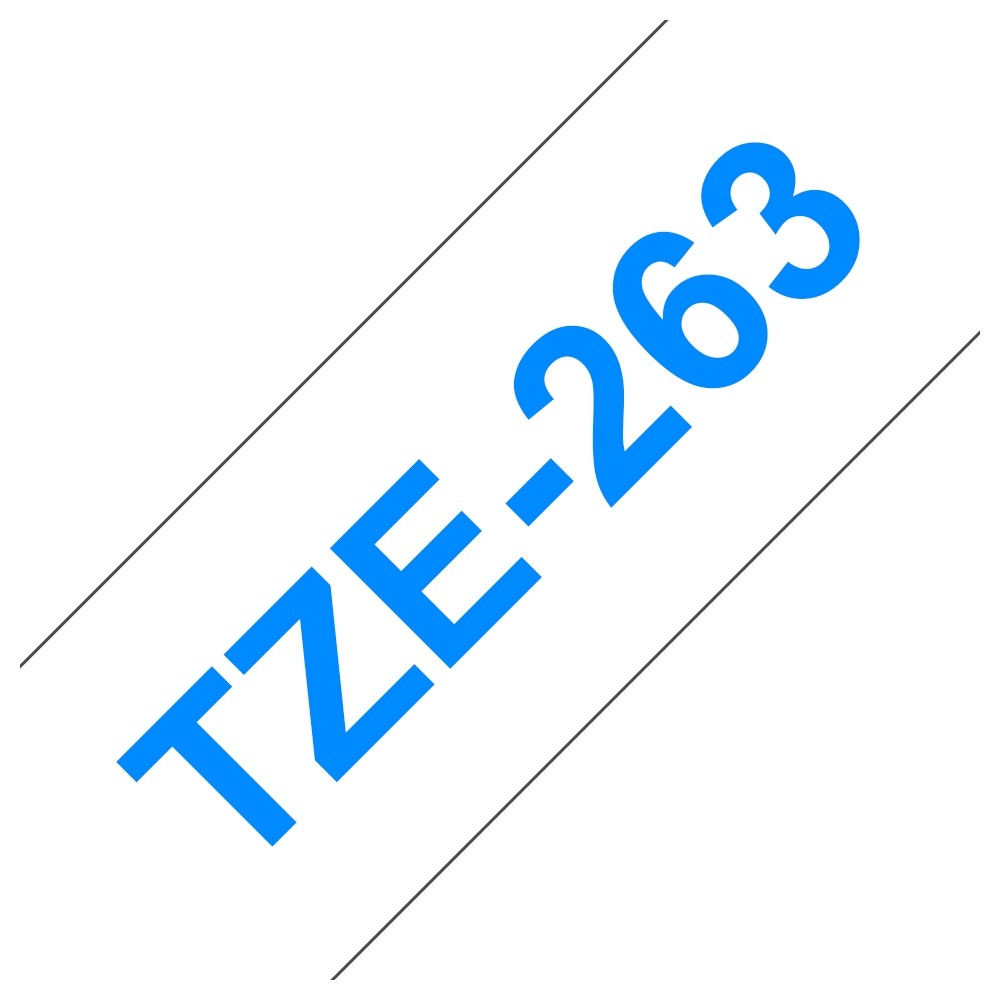 Brother TZe263 Cinta Laminada Generica de Etiquetas - Texto azul sobre fondo blanco - Ancho 36mm x 8 metros