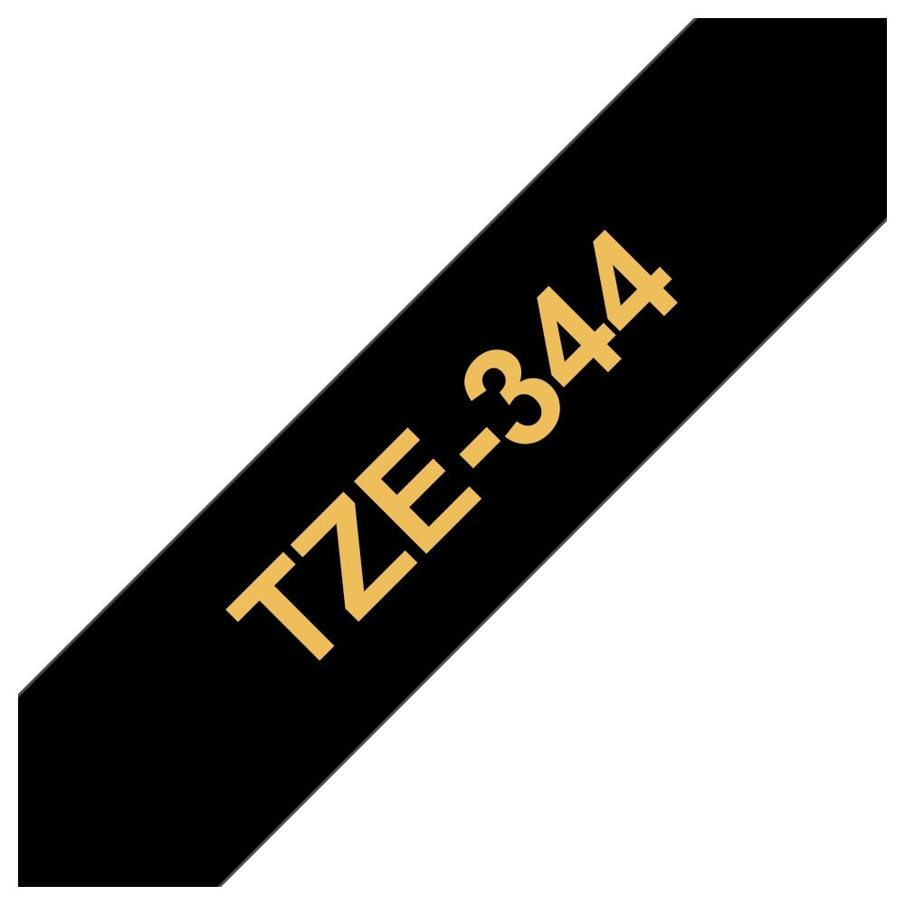 Brother TZe344 Cinta Laminada Generica de Etiquetas - Texto dorado sobre fondo negro - Ancho 18mm x 8 metros