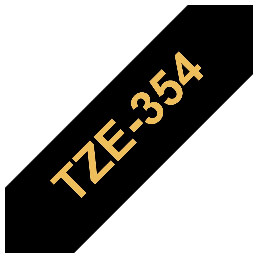 Brother TZe354 Cinta Laminada Generica de Etiquetas - Texto dorado sobre fondo negro - Ancho 24mm x 8 metros