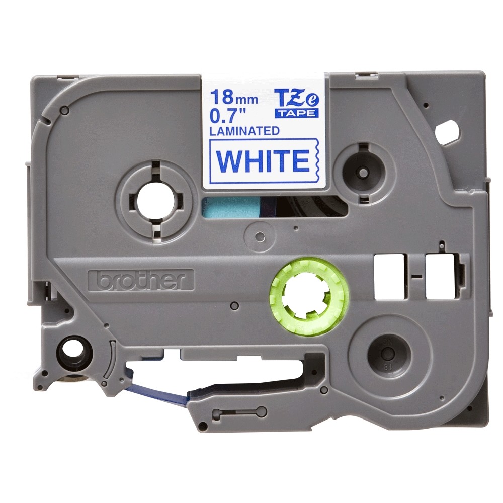 Brother TZe243 Cinta Laminada Original de Etiquetas - Texto azul sobre fondo blanco - Ancho 18mm x 8 metros Ver más grande