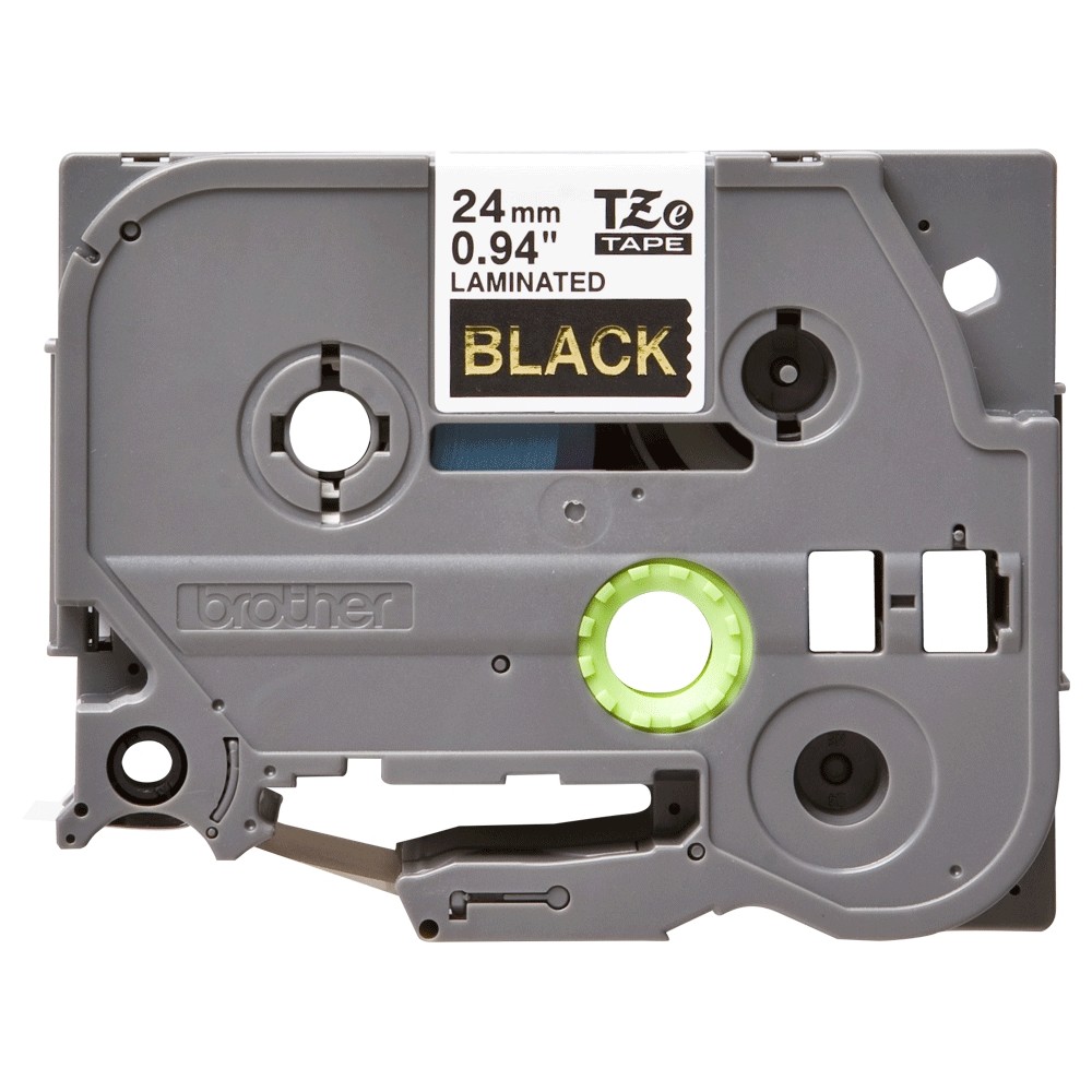Brother TZe354 Cinta Laminada Original de Etiquetas - Texto dorado sobre fondo negro - Ancho 24mm x 8 metros Ver más grande
