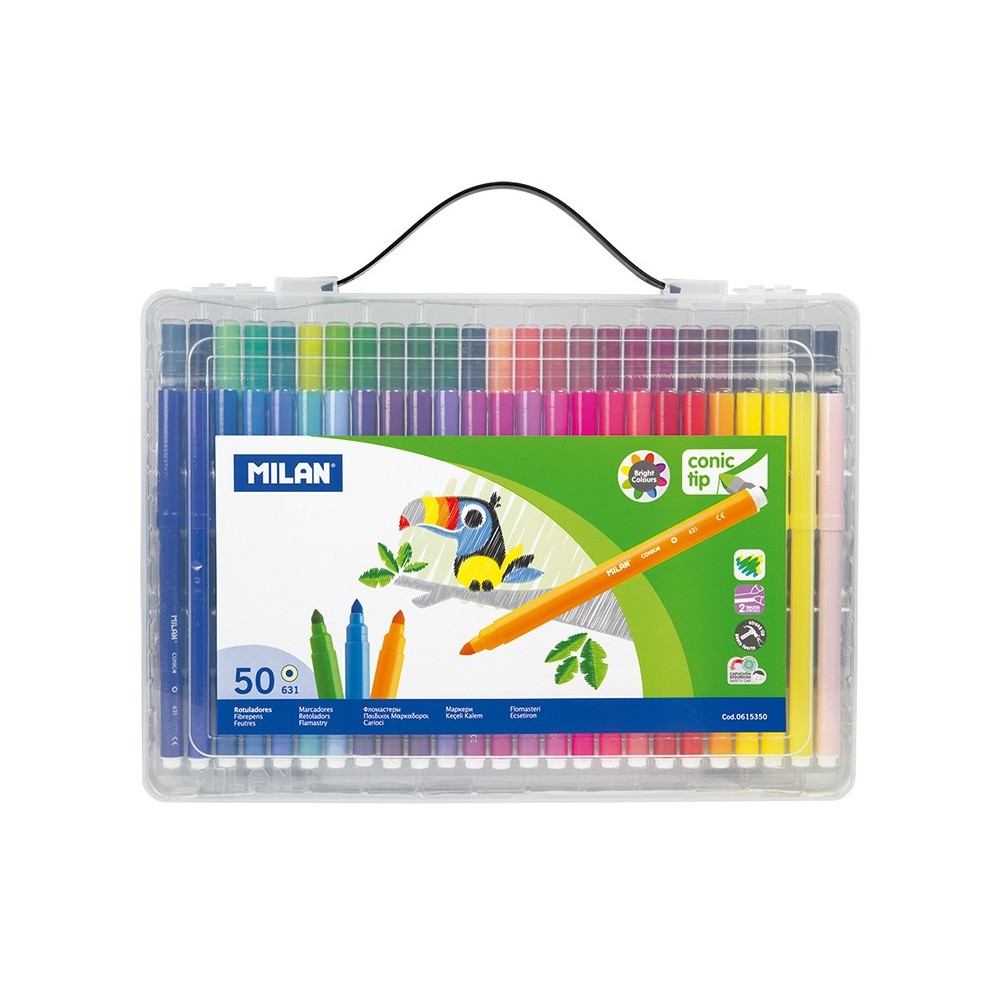 Milan Maletin de 50 Rotuladores de Punta Conica - Punta 5 mm - Tinta a base de agua - Mezclable entre si - Colores Surtidos Ver más grande