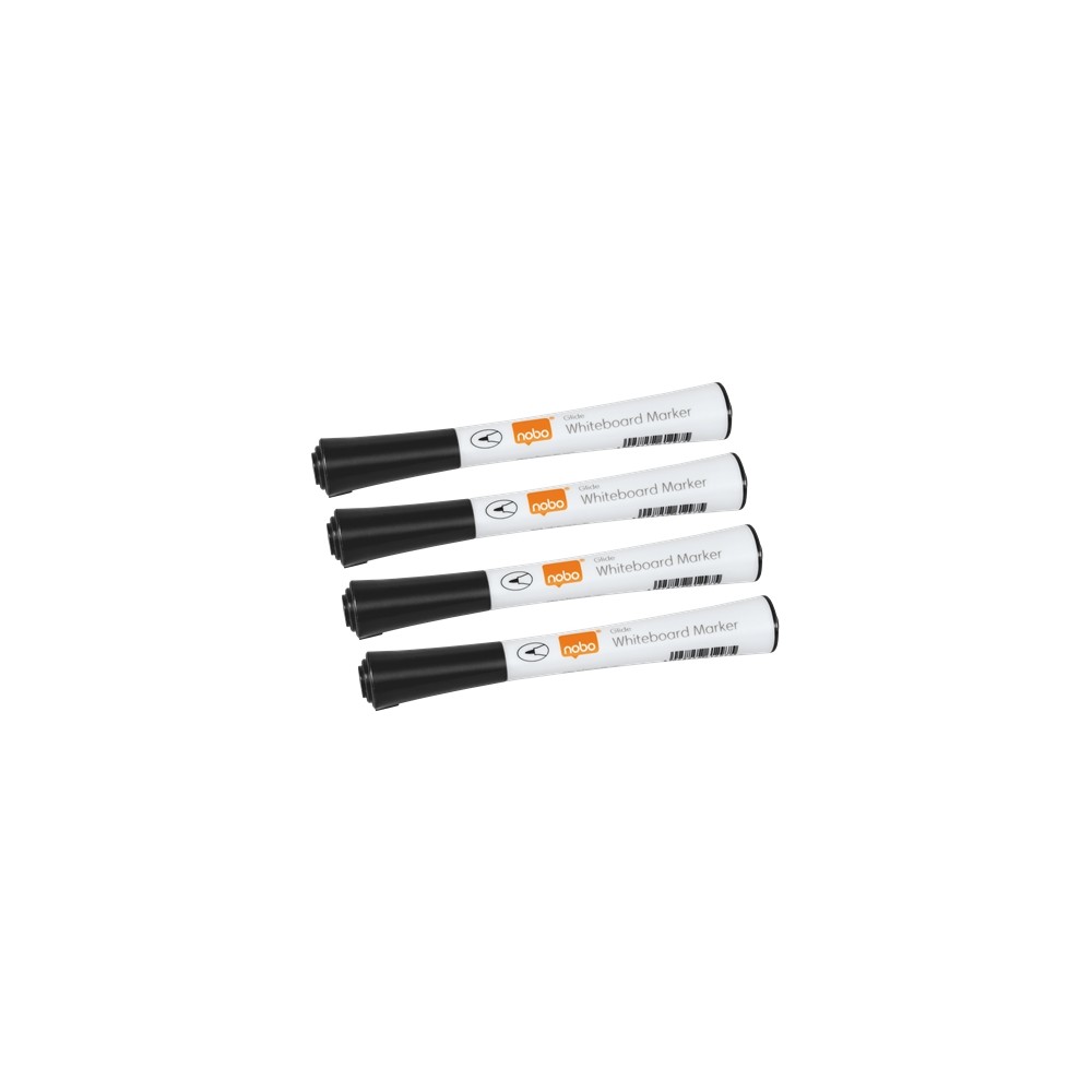 Nobo Pack de 4 Rotuladores para Pizarra Blanca - Punta Fina 1mm - Tinta con Poco Olor - Color Negro