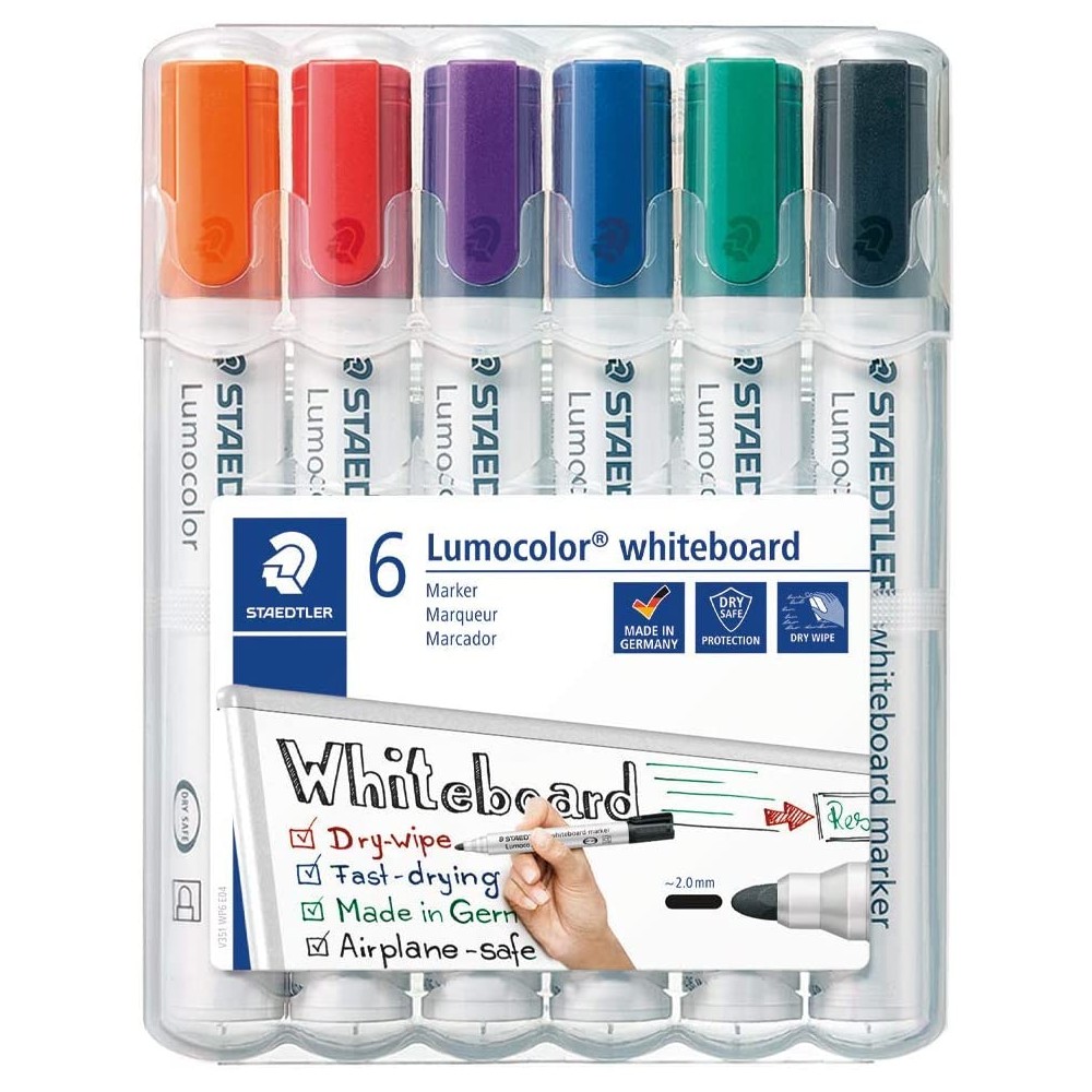 Staedtler Lumocolor 351 Pack de 6 Marcadores para Pizarra Blanca - Secado Rapido - Colores Surtidos
