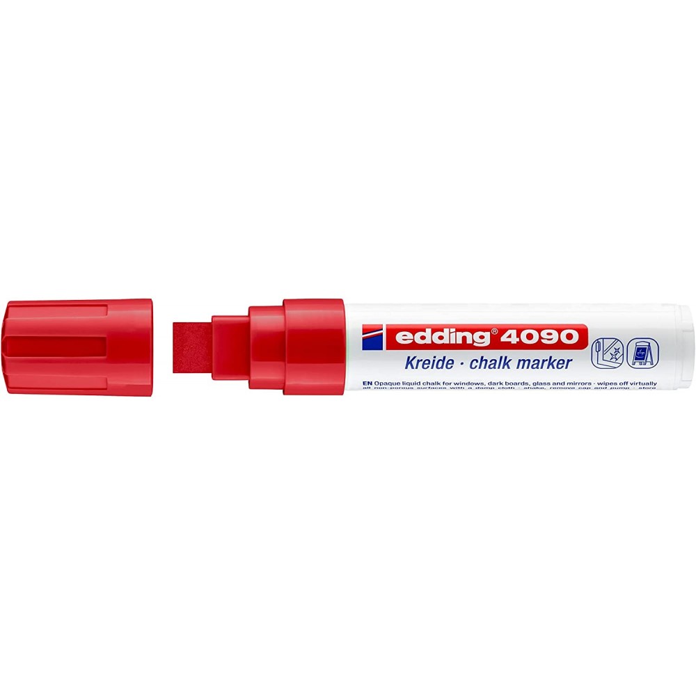 Edding 4090 Rotulador de Tiza Liquida - Punta Biselada - Trazo entre 4 y 15mm - Olor Neutro - Color Rojo
