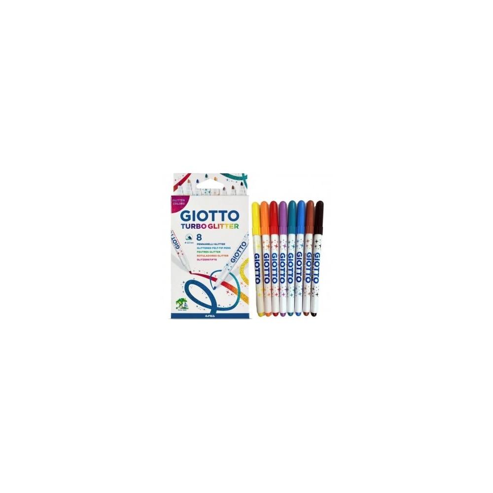 Giotto Turbo Glitter Pack de 8 Rotuladores - Punta Fina 2.8mm - Tinta al Agua - Lavable - Colores Surtidos