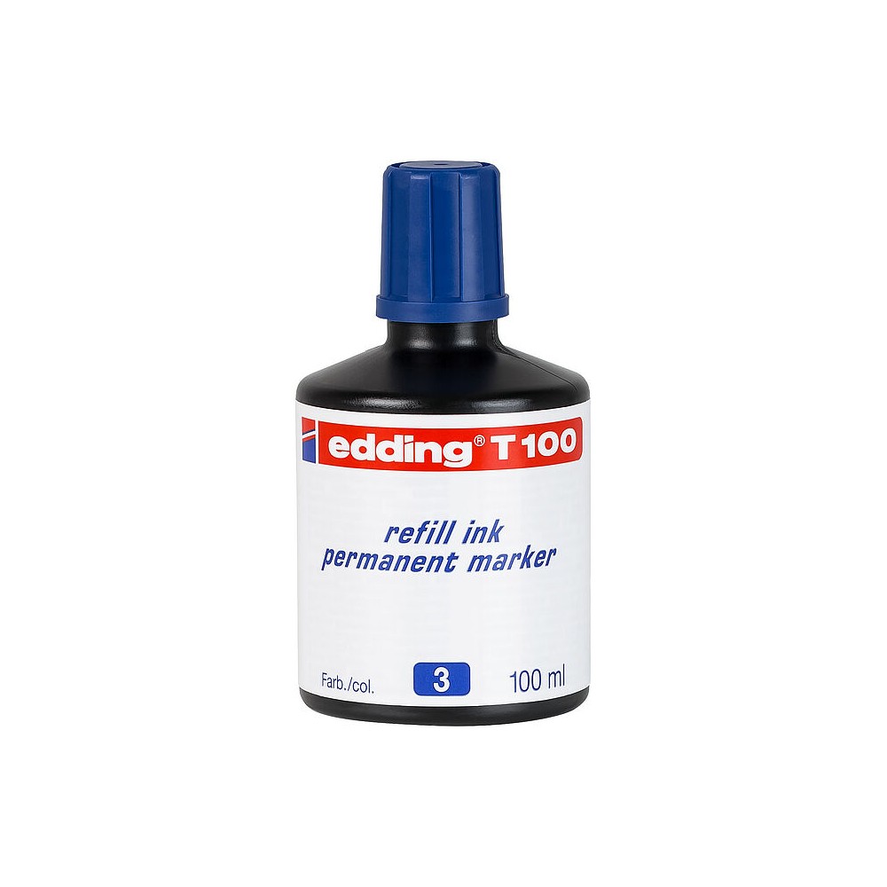 Edding T100 Bote de Recarga para Rotulador Permanente - Capacidad 100ml - Color Azul