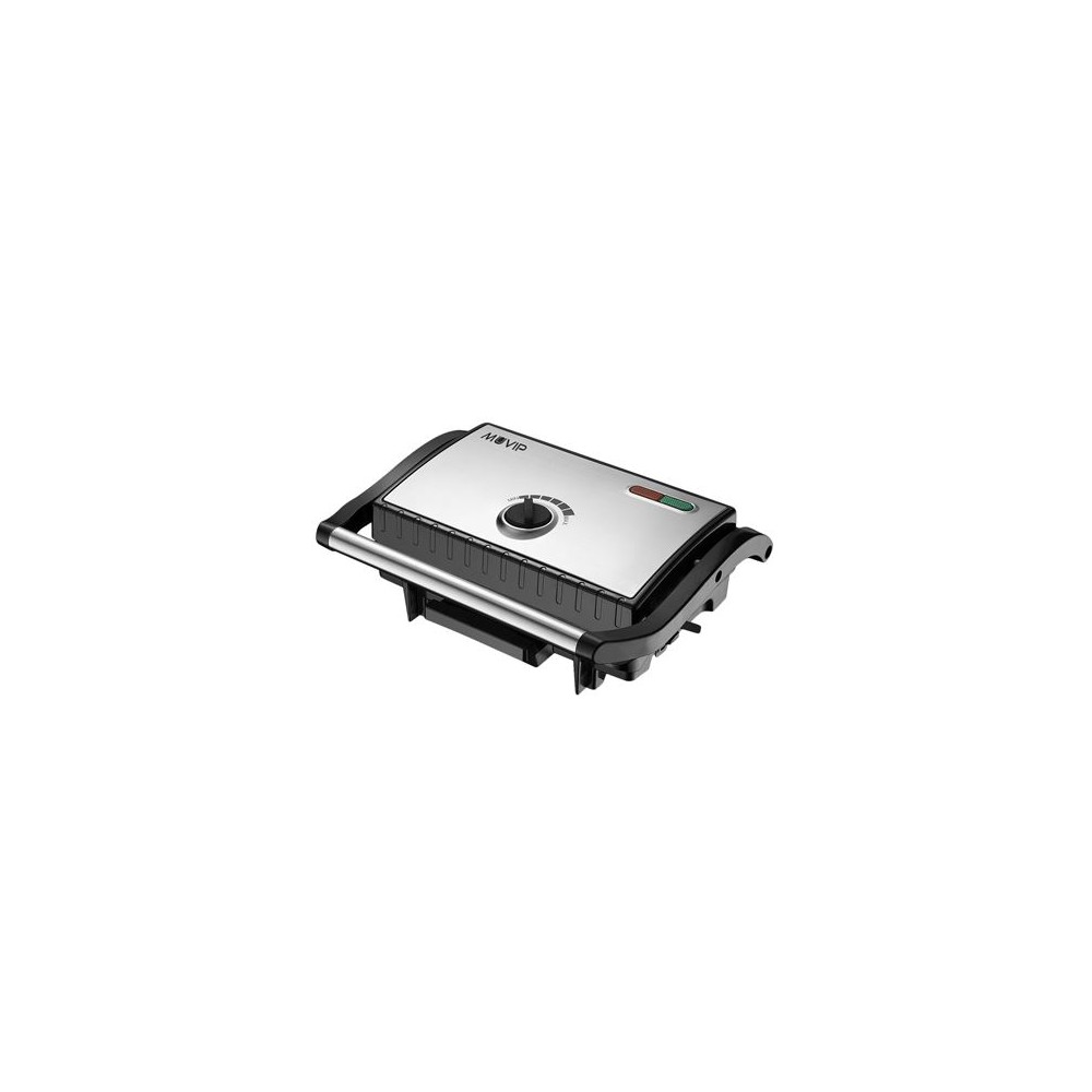Muvip Sandwichera Inox Placa Grill 1500W - Temperatura Regulable - Placa Superior Basculante - Presion Uniforme - Asa Tacto Frio
