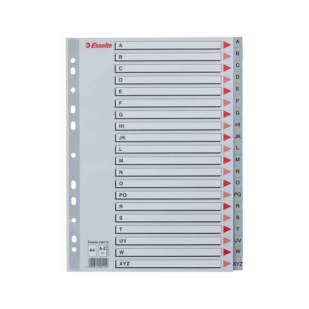 Esselte Abecedarios de Plastico con Caratula Indice A4 - PP - Tipo A-Z - Cartulina Indice: Carton Gris - Material PP - Tamaño A4