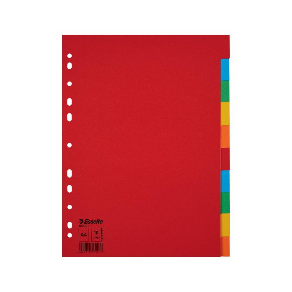 Esselte Separadores Scarton A4 10 Pestañas 5 Colores Gramaje150Grs sin Caratula Indice - Multicolor Materia Lcarton - Tamaño A4