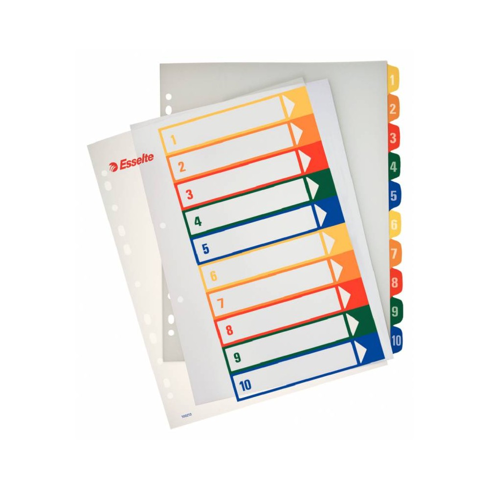 Esselte Indices Proyectos Imprimibles A4 Maxi PP Tipo 1-10 Multicolor Material PP Rigido 300 Micras Portada 350 Micras Tamaño A4