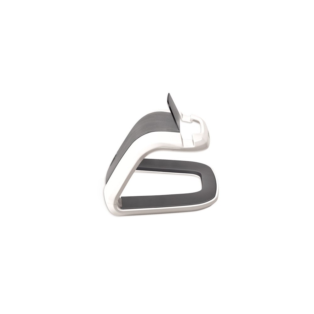 Soporte para Tablet de elgante y moderno diseño. Eleva la altura del Tablet evitando malas posturas y tensión en hombros y cuello. Permite colocar la tablet tanto en posición vertical como horizontal. Válido para Tablet de cualquier tamaño hasta 13 mm de grosor. Soporta hasta 13 kg de peso.