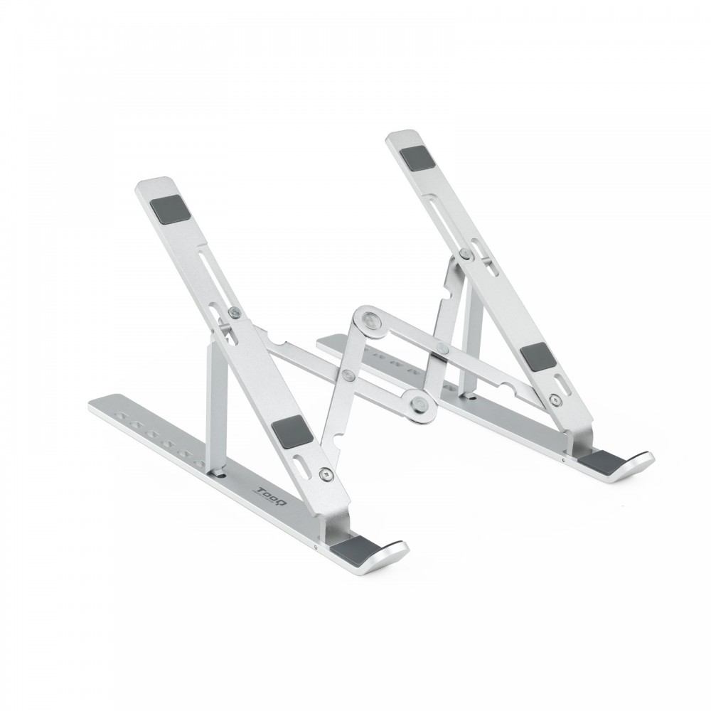 Tooq Soporte para Portatil hasta 15" - 7 Niveles de Altura - Plegable - Base Antideslizante - Peso Max 5kg - Color Plata
