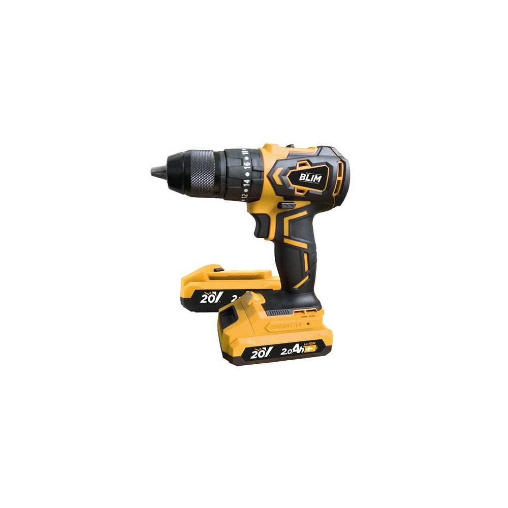 Blim Taladro Percutor a Bateria 20V 2Ah - Motor sin Escobillas - 45Nm Par Maximo - 2 Velocidades 0-450/0-1650rpm - Incluye 2 Bat