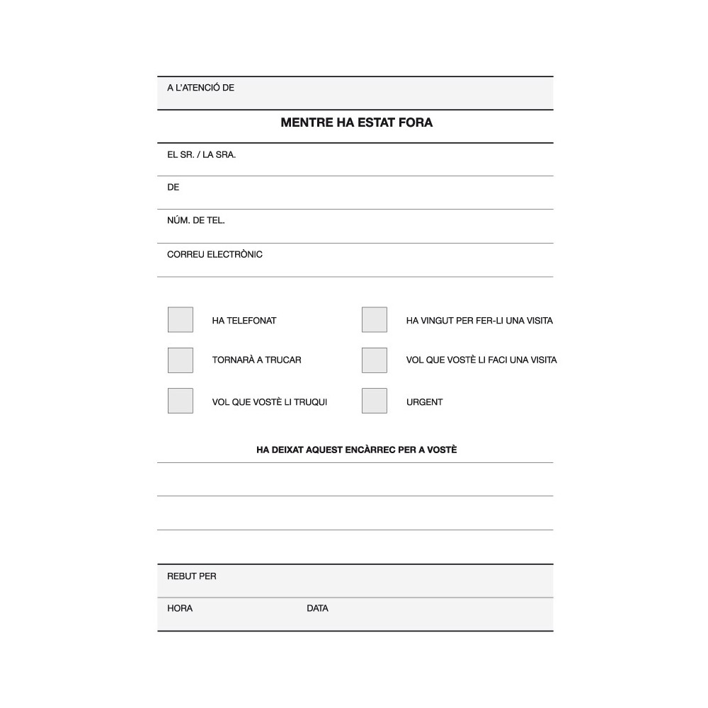 Este talonario para registro de llamadas modelo A-62 CAT es el complemento perfecto para cualquier oficina o negocio que necesite llevar un registro detallado de sus llamadas. Con un formato vertical de 1/8 y texto en catalán, este talonario está diseñado para facilitar la tarea de registro y seguimiento de llamadas.