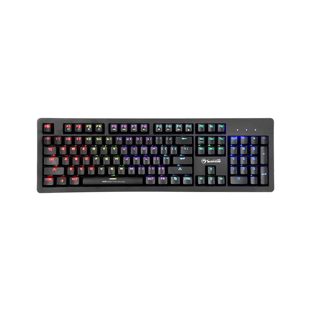 El Teclado gaming MA-KG916 SP de Scorpion es un teclado mecánico con retroiluminación RGB y modos programables. Hecho a medida para los jugadores, el KG916 aúna la tecnología anti-ghosting que te asegura una mayor precisión al teclear; teclas retroiluminadas individualmente y programables; interruptores mecánicos Outemu reemplazables y una estructura ultra sólida con marco de acero de 1,20 mm.
