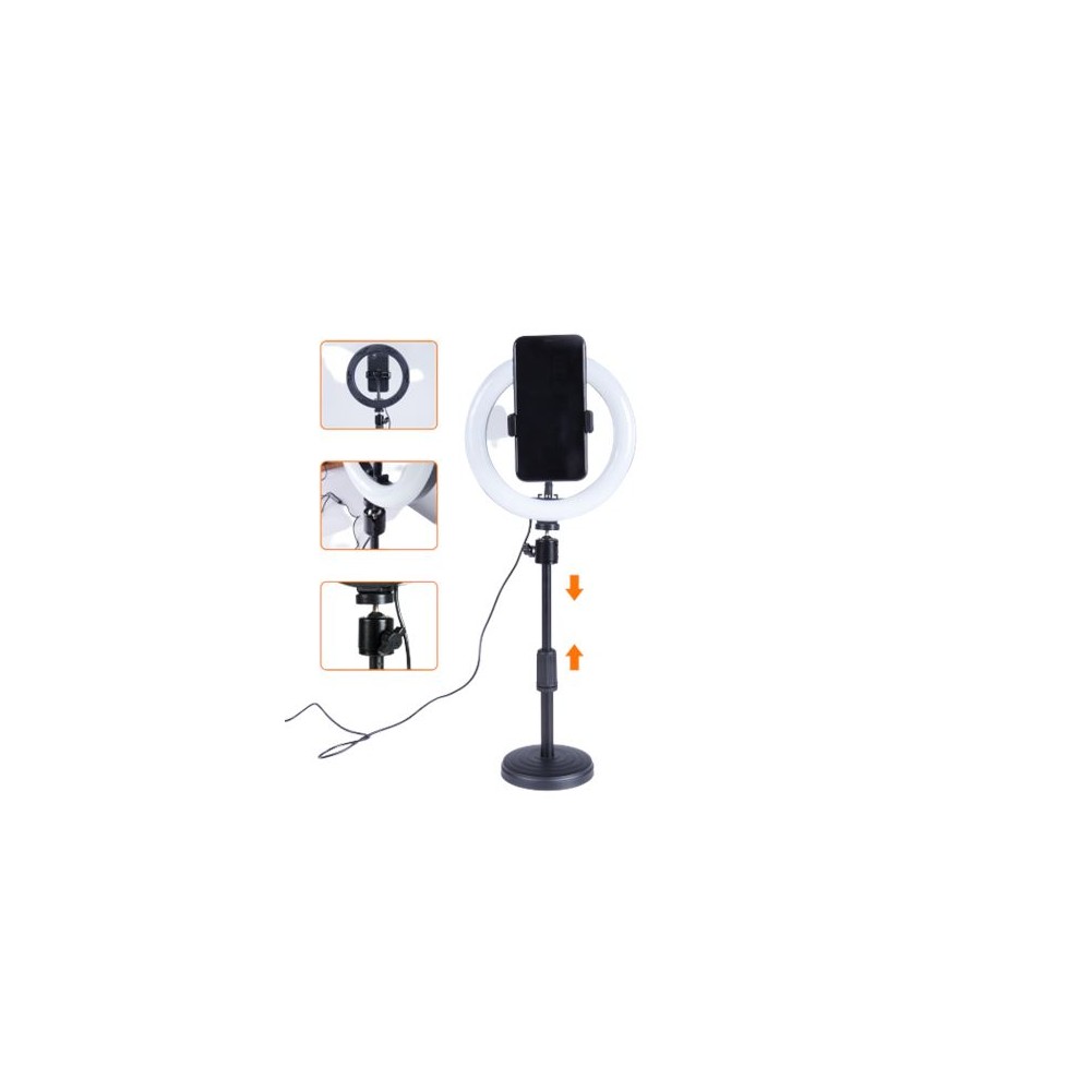 XO BGD002 Pack Youtuber Anillo de Luz 20cm de Diametro con Tripode de Mesa hasta 27.5cm con Soporte para Smartphone - Mando a Di